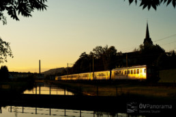 Eine nicht näher bekannte Störung hat die abendliche S11 um fast 10 Minuten verspätet. Nicht nur den Fahrgästen sondern auch dem Fotografen wäre ein pünktlicher Zug lieber gewesen, weil dann der Schatten der Bäume noch nicht bis zum Gleis bei Bürglen gereicht hätte. Immerhin ist die Sonne noch da und so glänzt der Zug wunderschön gold-orange in der Abendsonne. (Foto: Dominic Stucki)